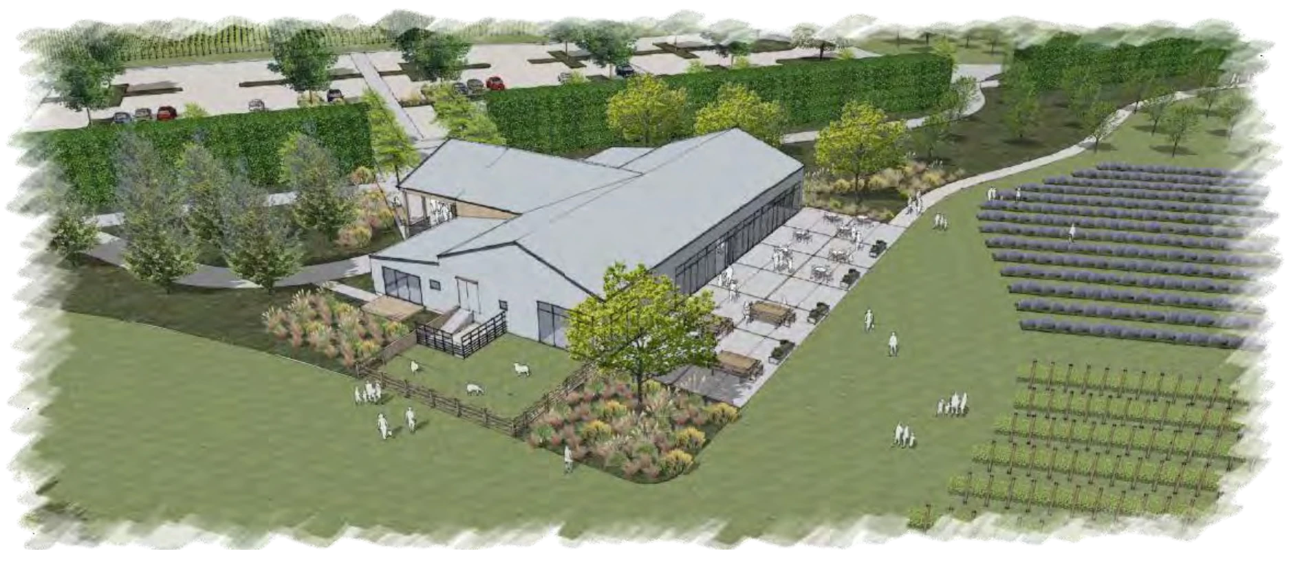 - Seasonal plantings including: lavender, tulips, wildflowers & vines